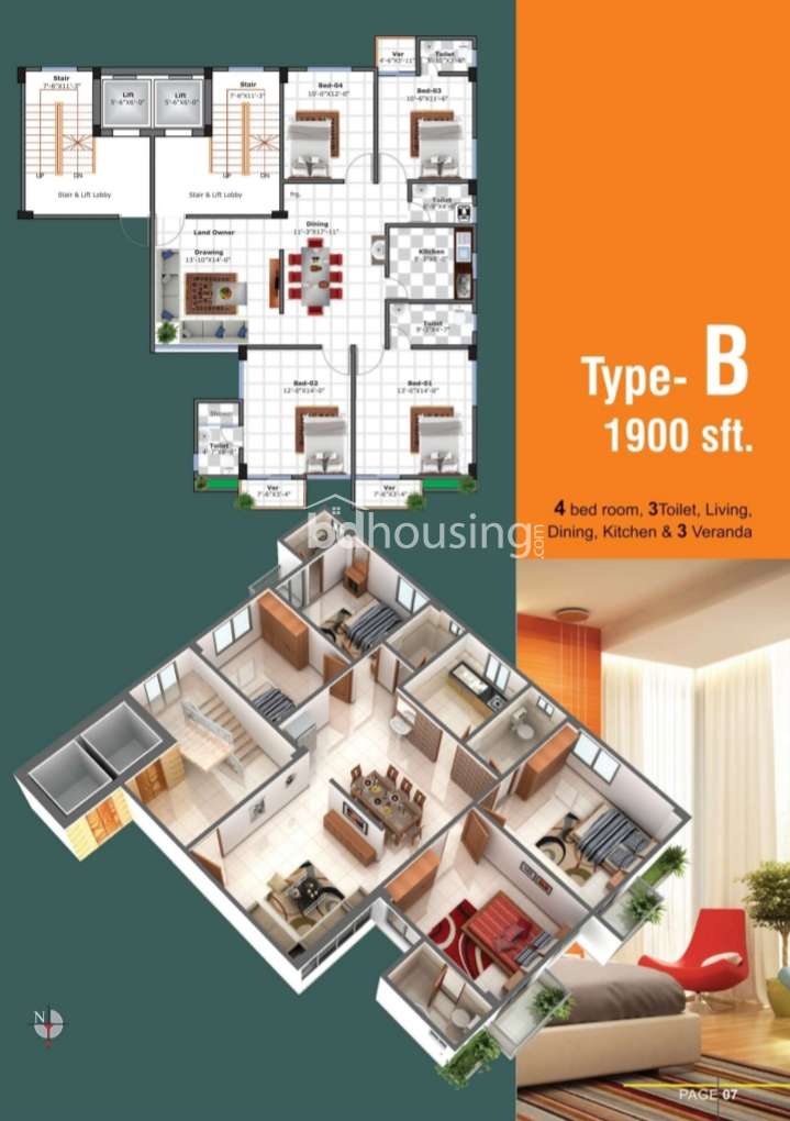 Aftabnagor D block 1900 sft flat