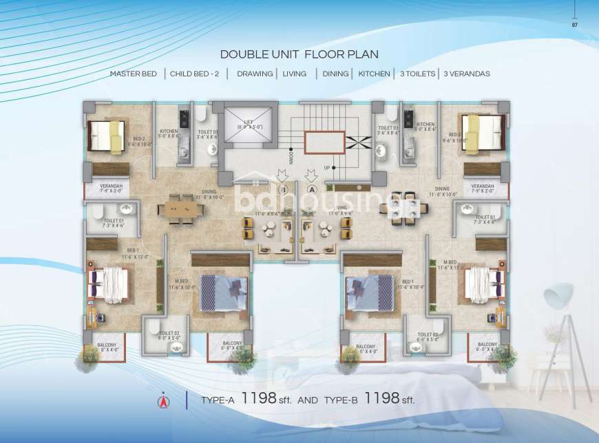 Unit Type B-1198 sft