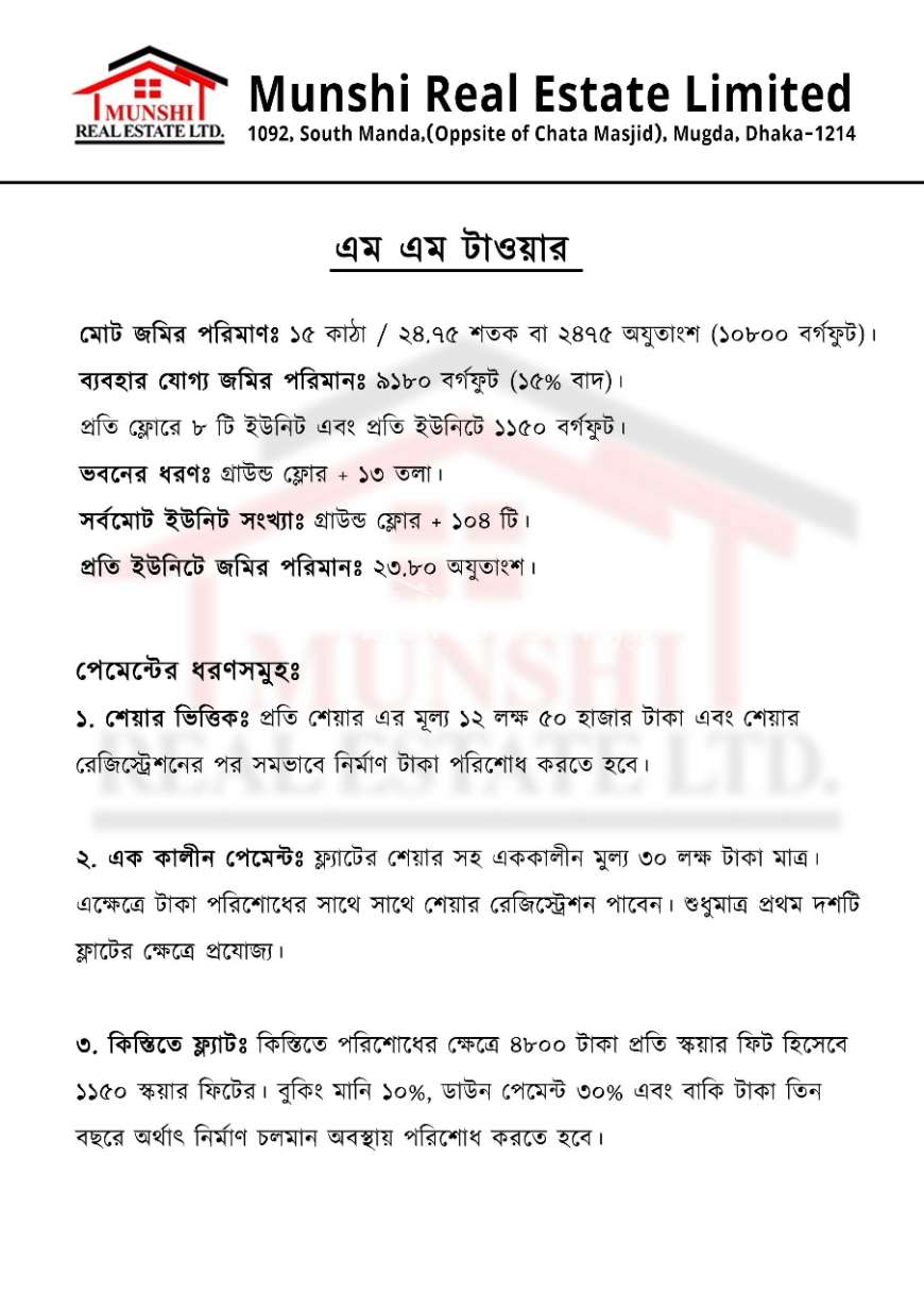 ভবনের ধরণঃ গ্রাউন্ড ফ্লোর ১৩ তলা।