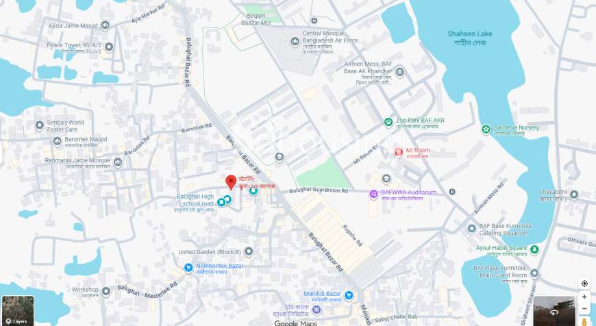 লোকেশন:-স্টার্লিং স্কুলের দক্ষিণপাশ/বায়তুন নূর মাদ্রাসা লাগোয়া। বালুঘাট বাজার খুব কাছেই, সামনেই এয়ারফোর্স ক্যান্টনমেন্ট, ইসিবি চত্বর, ঢাকা।