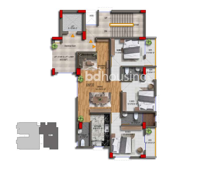 Type A- 1150 sft, Type B- 1200 sft & Type C- 1250 sft
