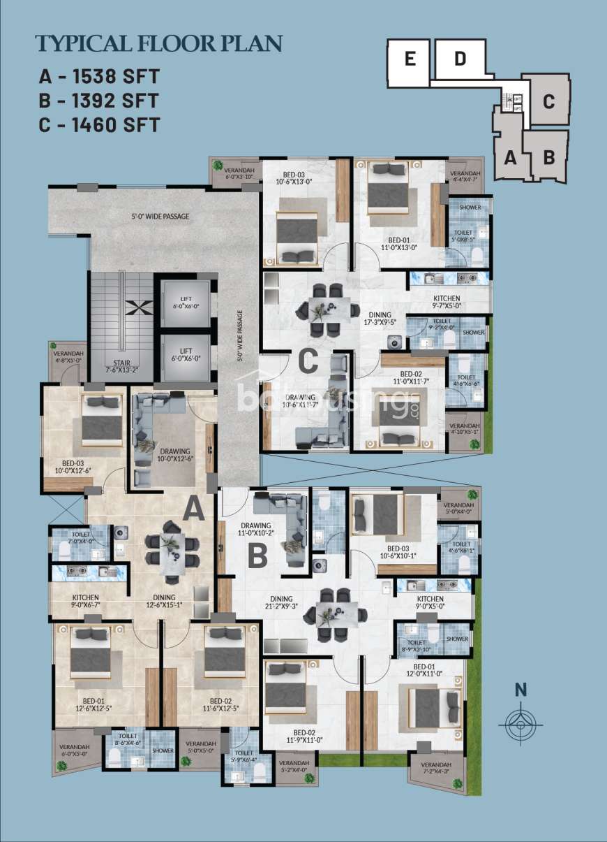 1392 sft. - 1538 sft.